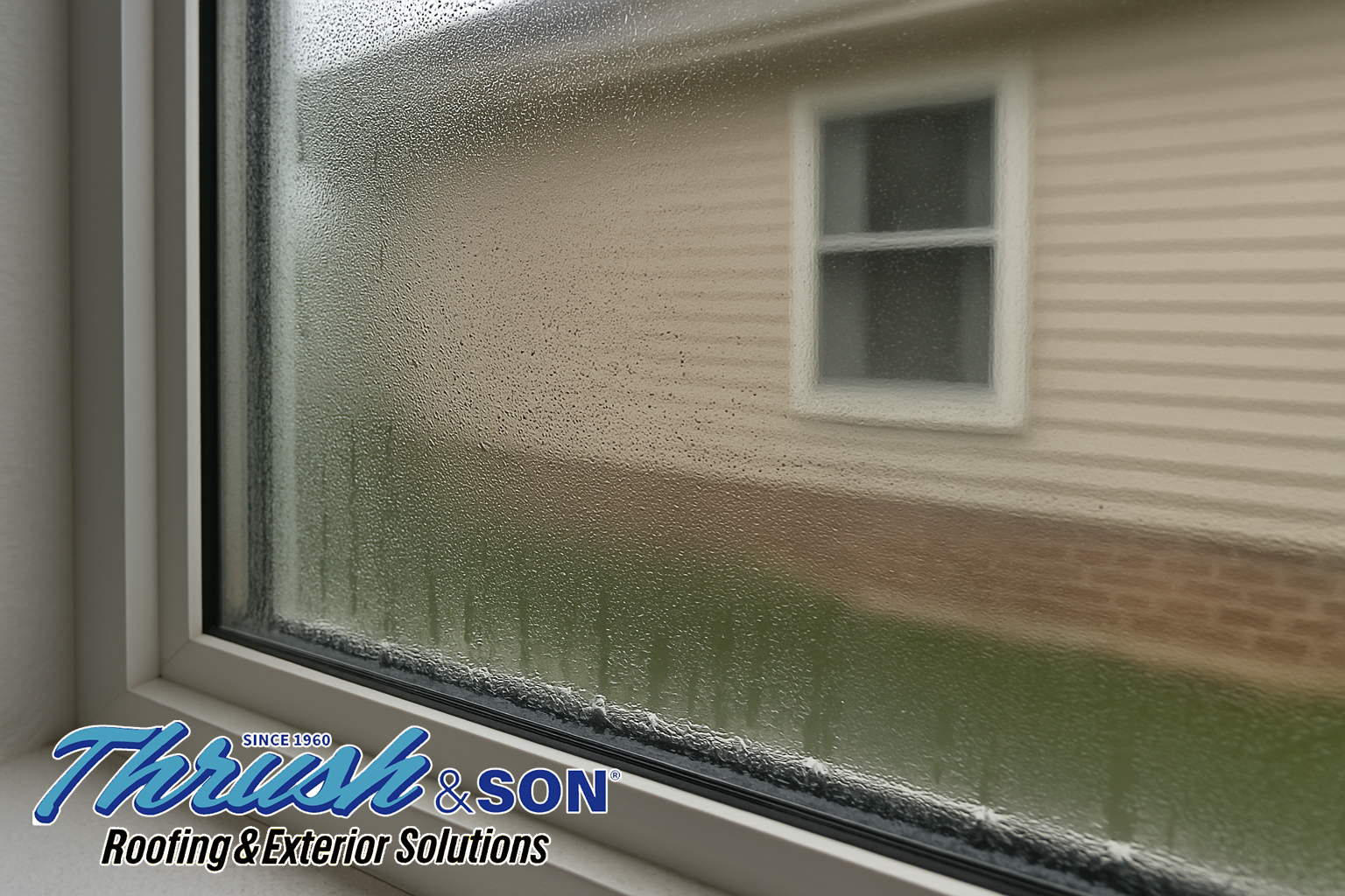 1. Upgrade to Warm-Edge Spacer Windows — Replace old units with multi-pane windows featuring warm-edge spacers and low-E glass to keep inner surfaces warmer and prevent condensation. 2. Add Gas-Filled Panes — Argon or krypton fills between panes act as insulators, raising dew point and stopping severe condensation even in cold climates. 3. Improve Indoor Ventilation — Exhaust fans, dehumidifiers, or HRVs lower humidity levels, reducing the moisture available for condensation. 4. Seal Drafts & Air Leaks — Caulk frames, add weatherstripping, and insulate around windows to block cold air that triggers condensation. 5. Professional Installation — Thrush & Son ensures every detail—from spacers to seals—eliminates severe condensation for good with warranty-backed results. External resource: Learn more about window efficiency from the National Fenestration Rating Council: nfrc.org. Complement your window upgrades with other improvements: Parts of a Roof, Vinyl Siding Styles, and Casement Windows Guide.